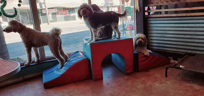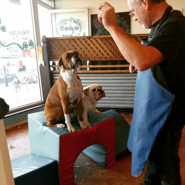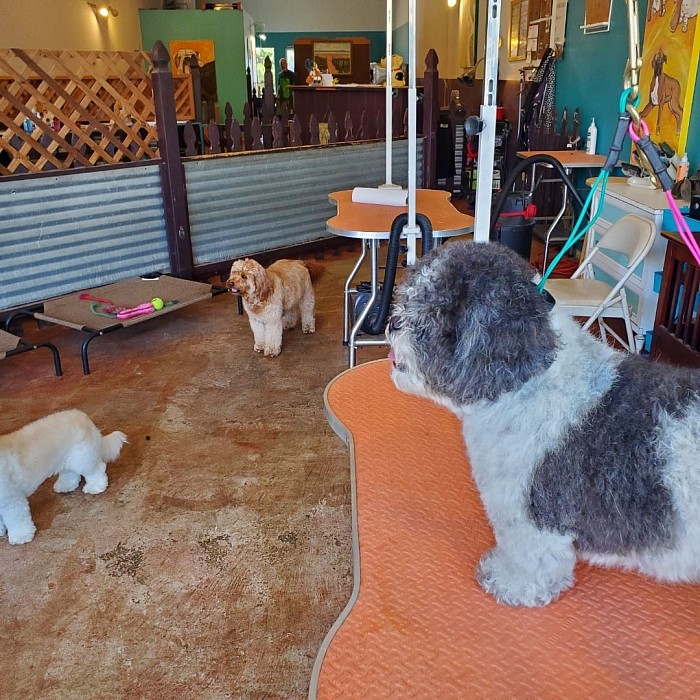 We let all of the dogs that are groomed play with all of our daycare dogs. Always fun and cage free grooming. And the daycare dogs love meeting new friends daily.