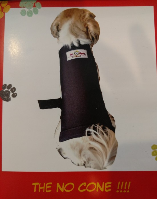 The Shield was developed to work as an alternative to the "cone of shame". The Shield fits around your dog snugly, preventing them from turning their body around to scratch or bite a problem area. This helps your dog heal safely, and keeps them from further irritating their wound.